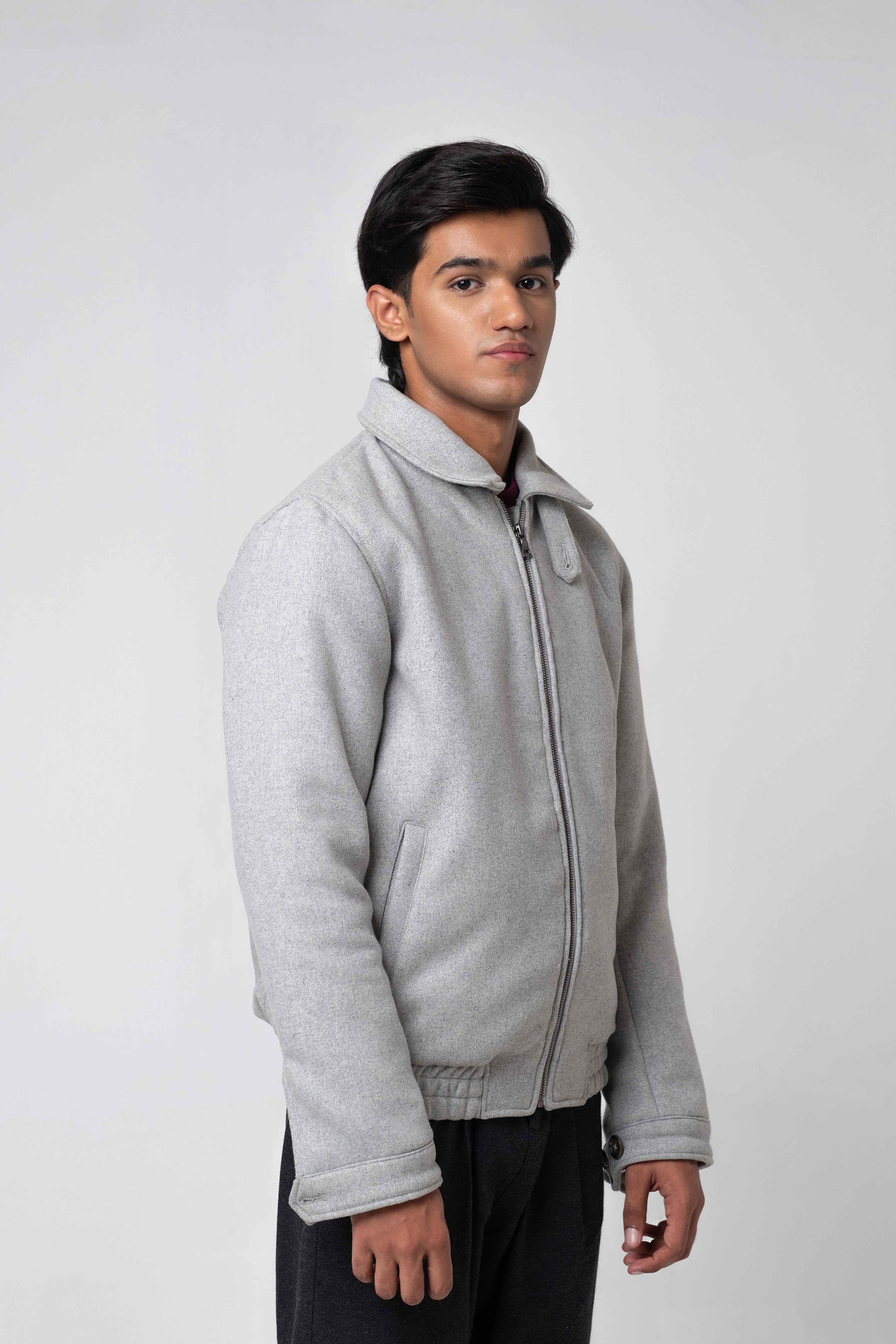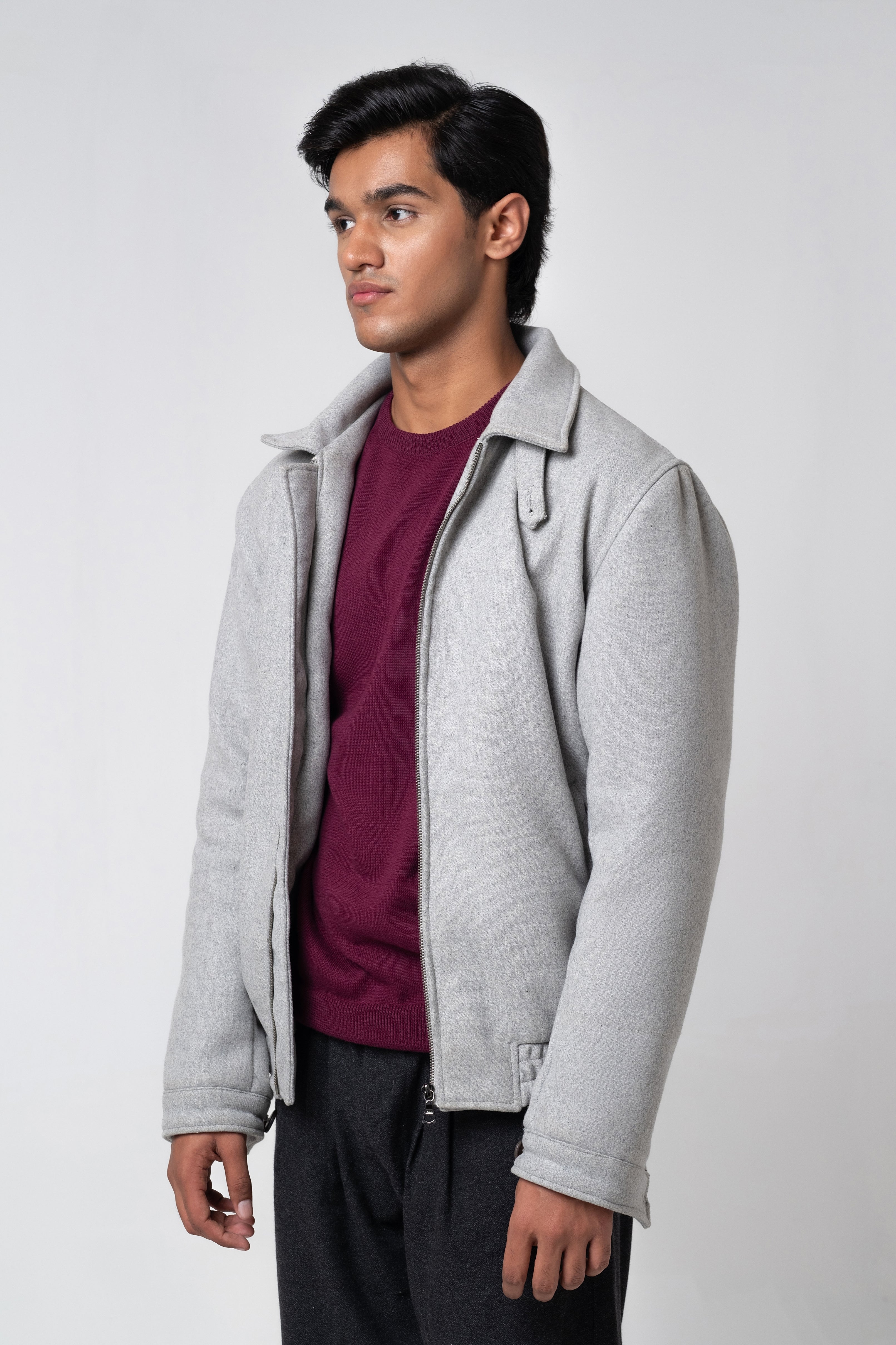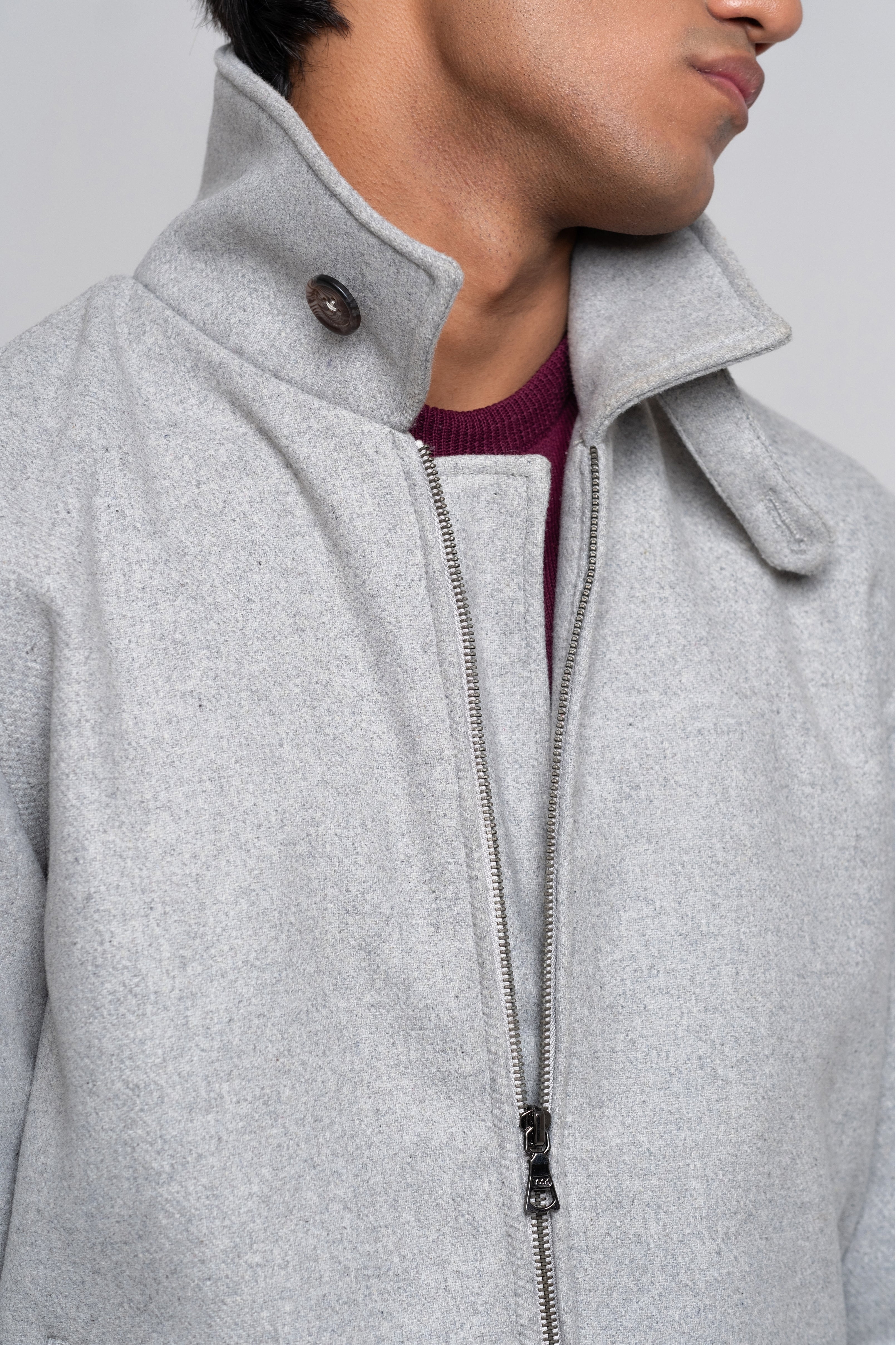 Design details: Wool-blend zip-up jacket offering a clean, refined winter aesthetic.