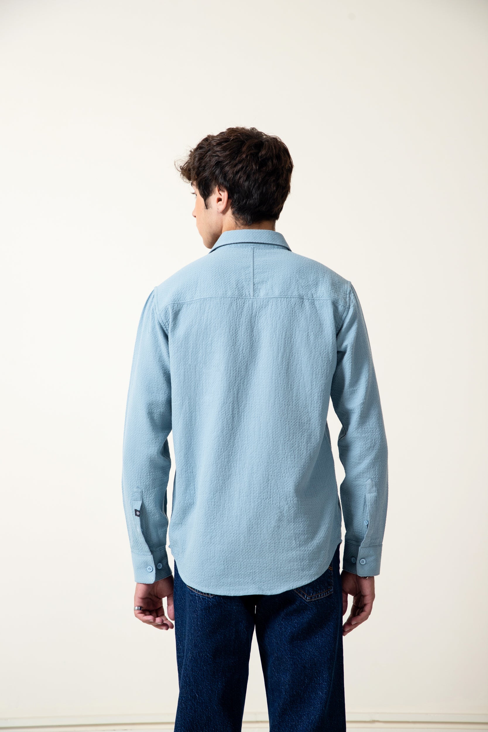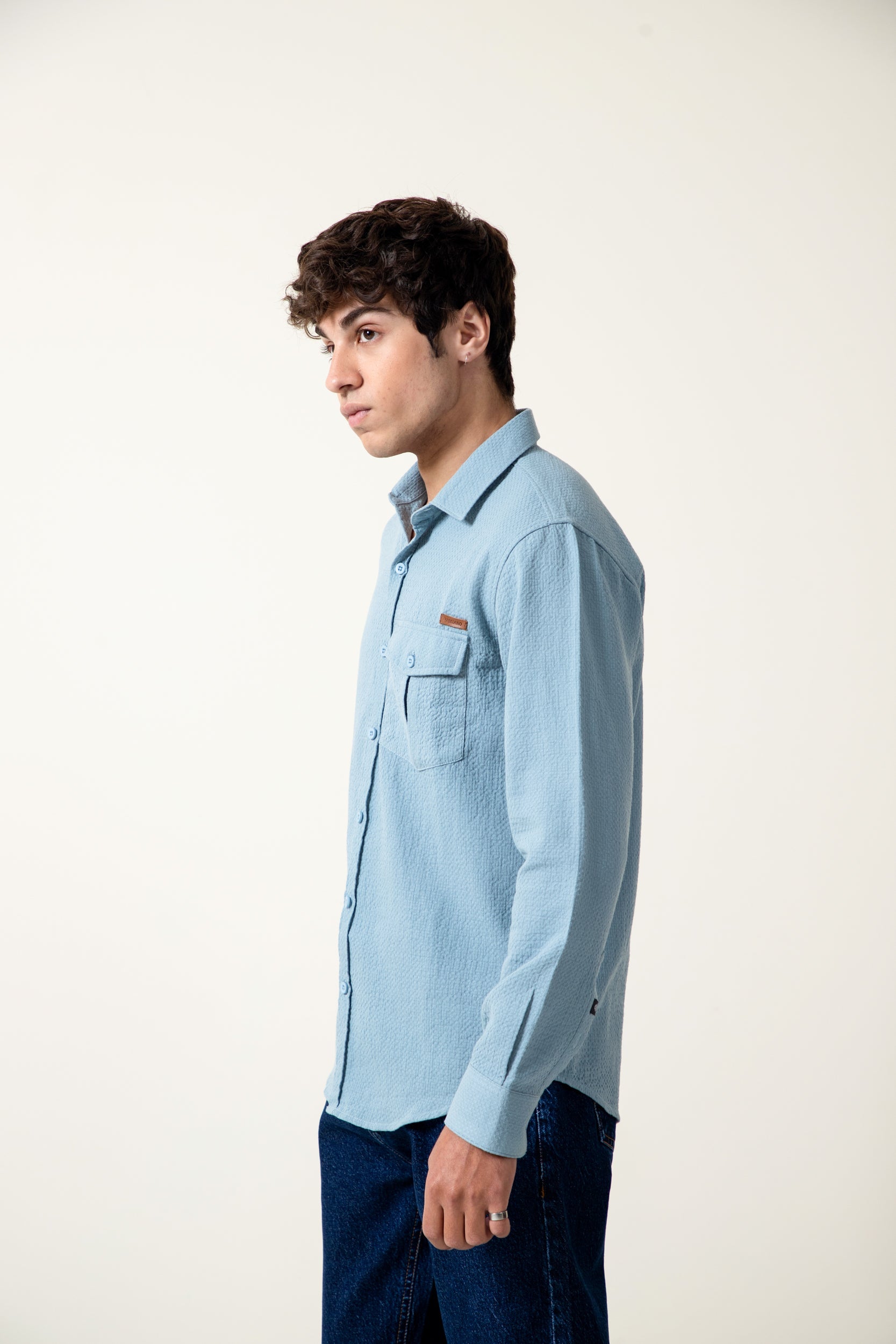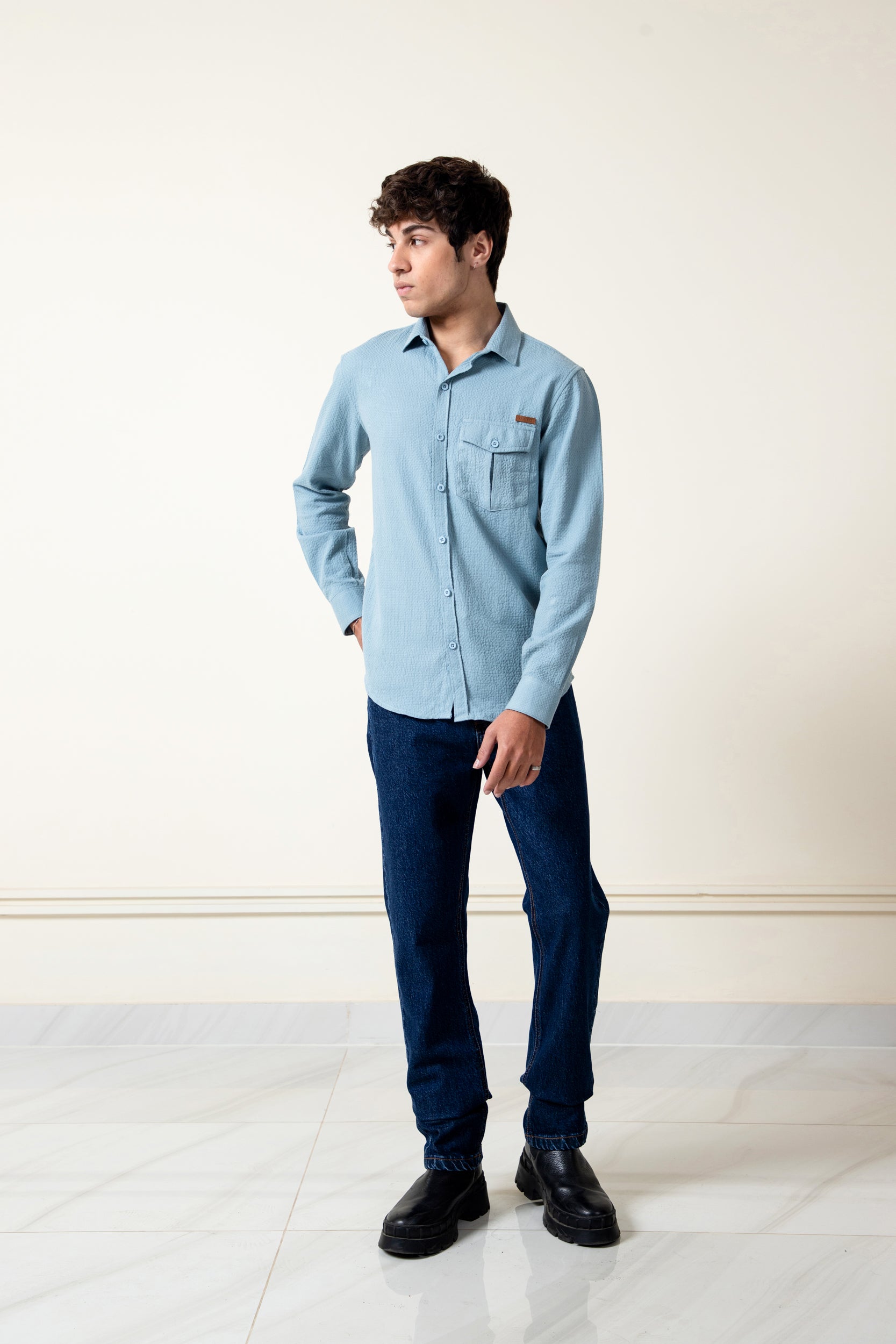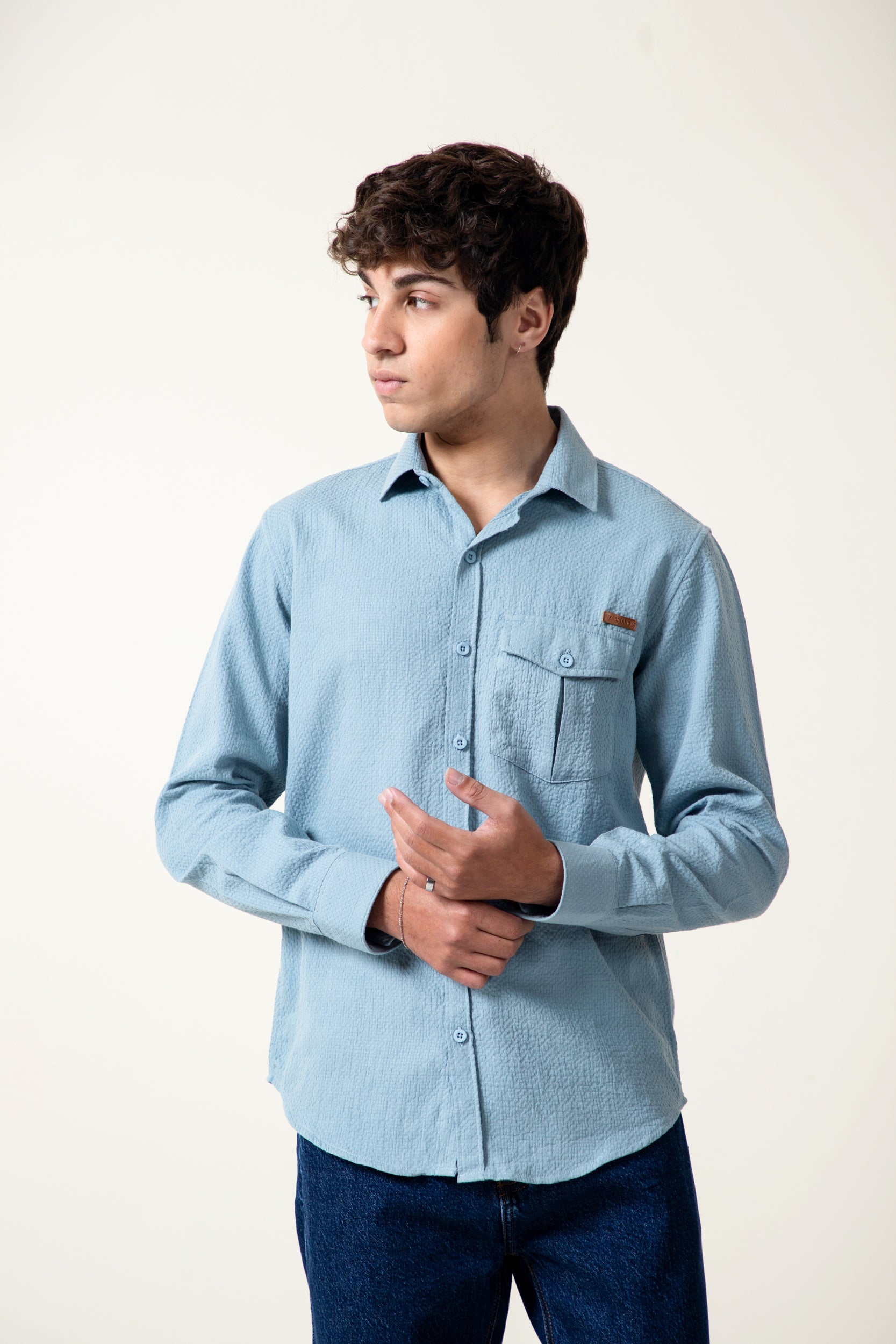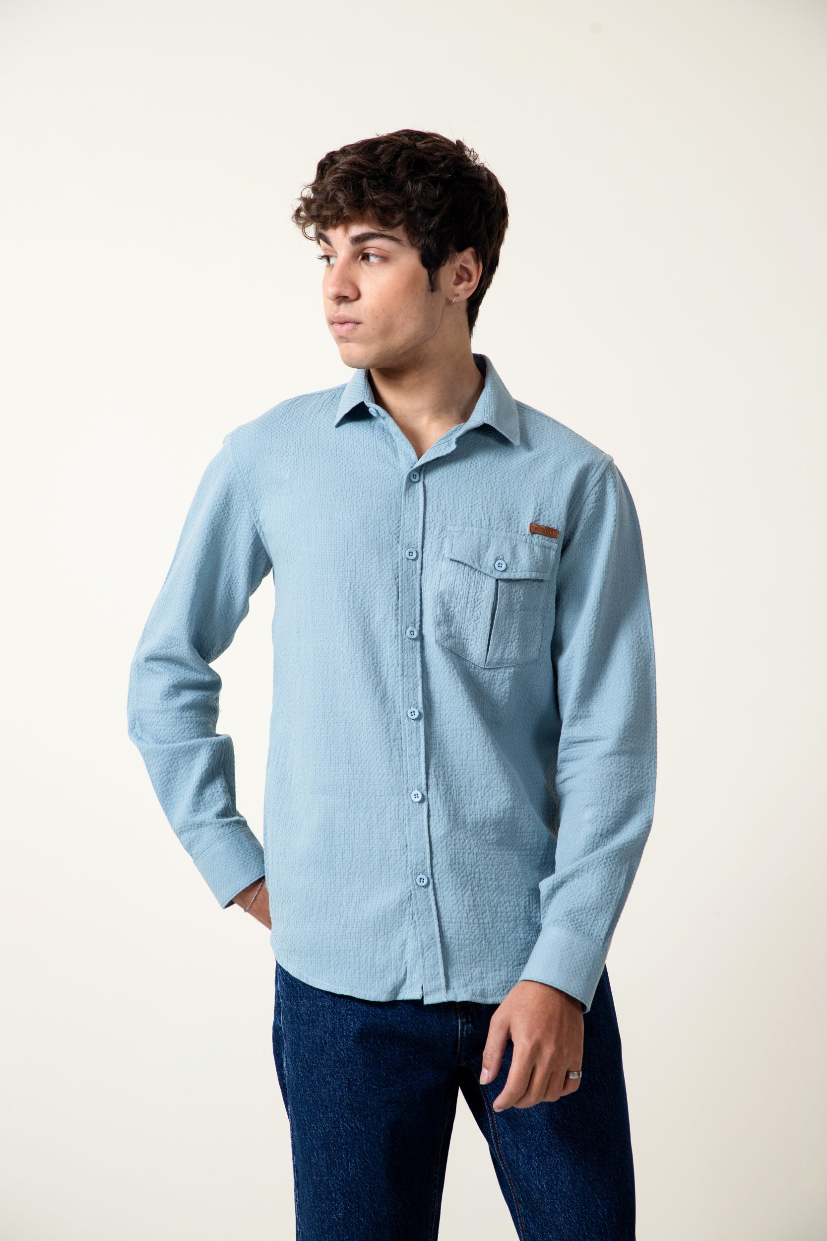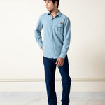 unleash your style with our super soft sky blue dobby fabric shirt ,with pocket at chest to enhance your look
