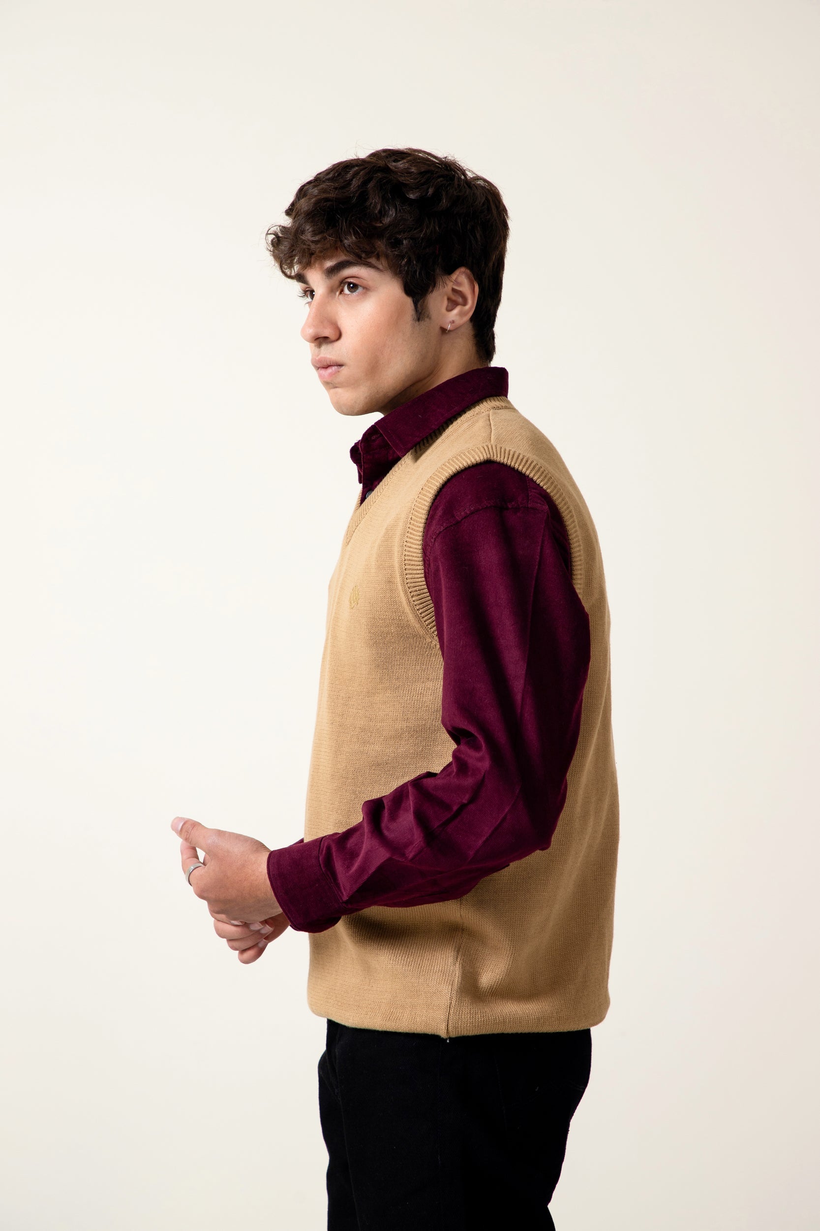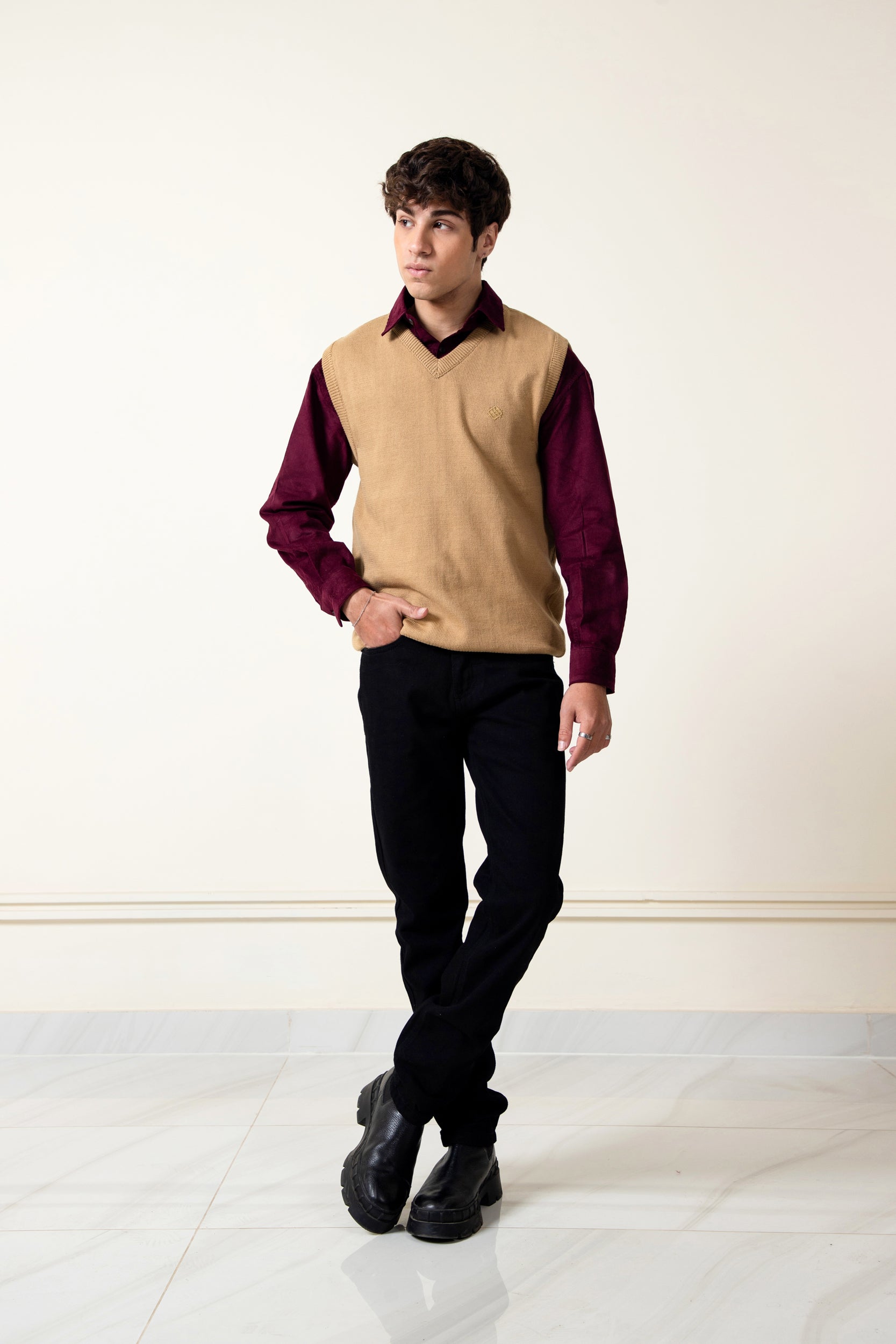 Design detail: A Soft Sleeveless jumper with ribbed V-neck, hem.