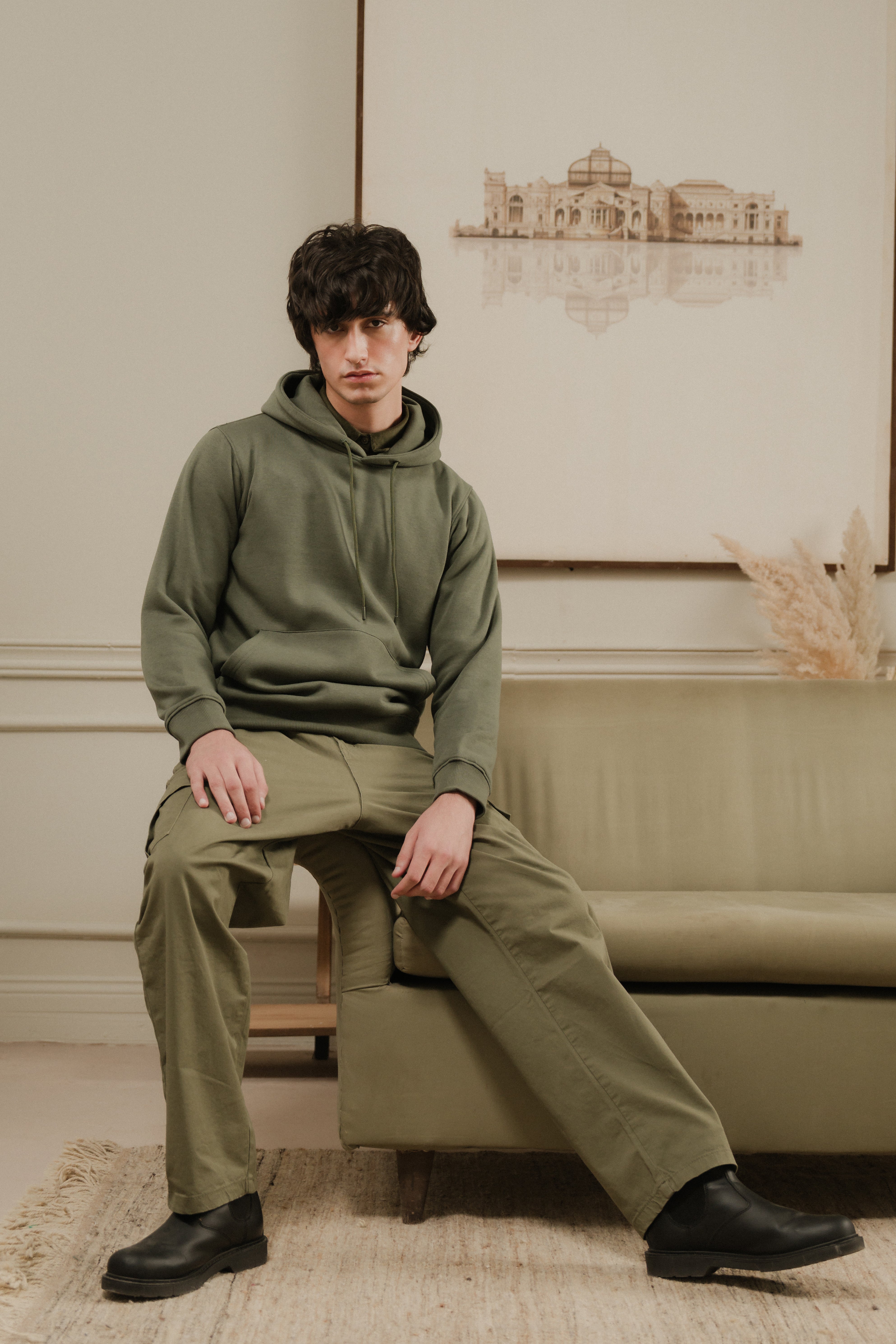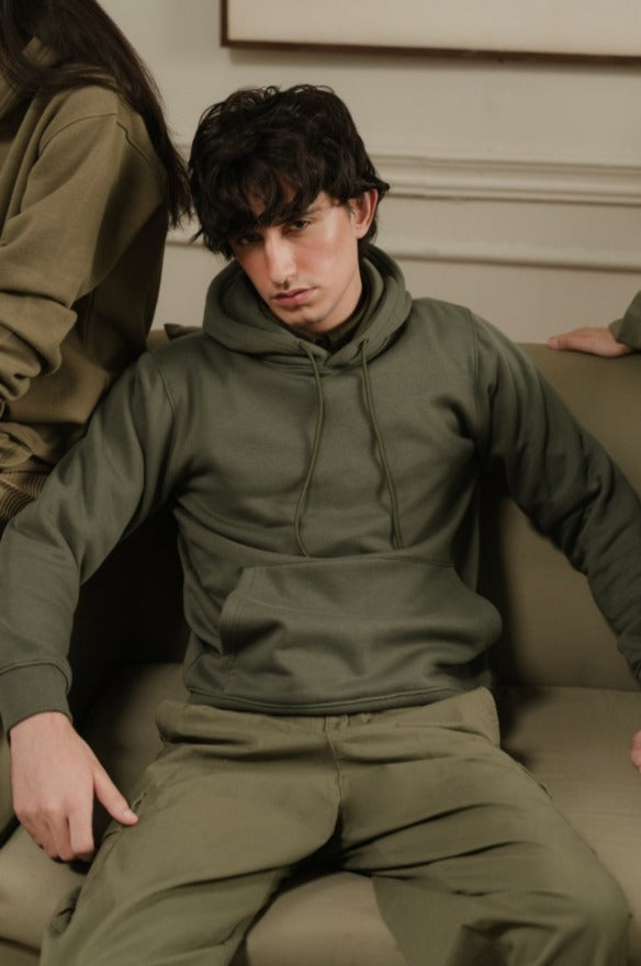 Design details: Olive plain full sleeve hoodie