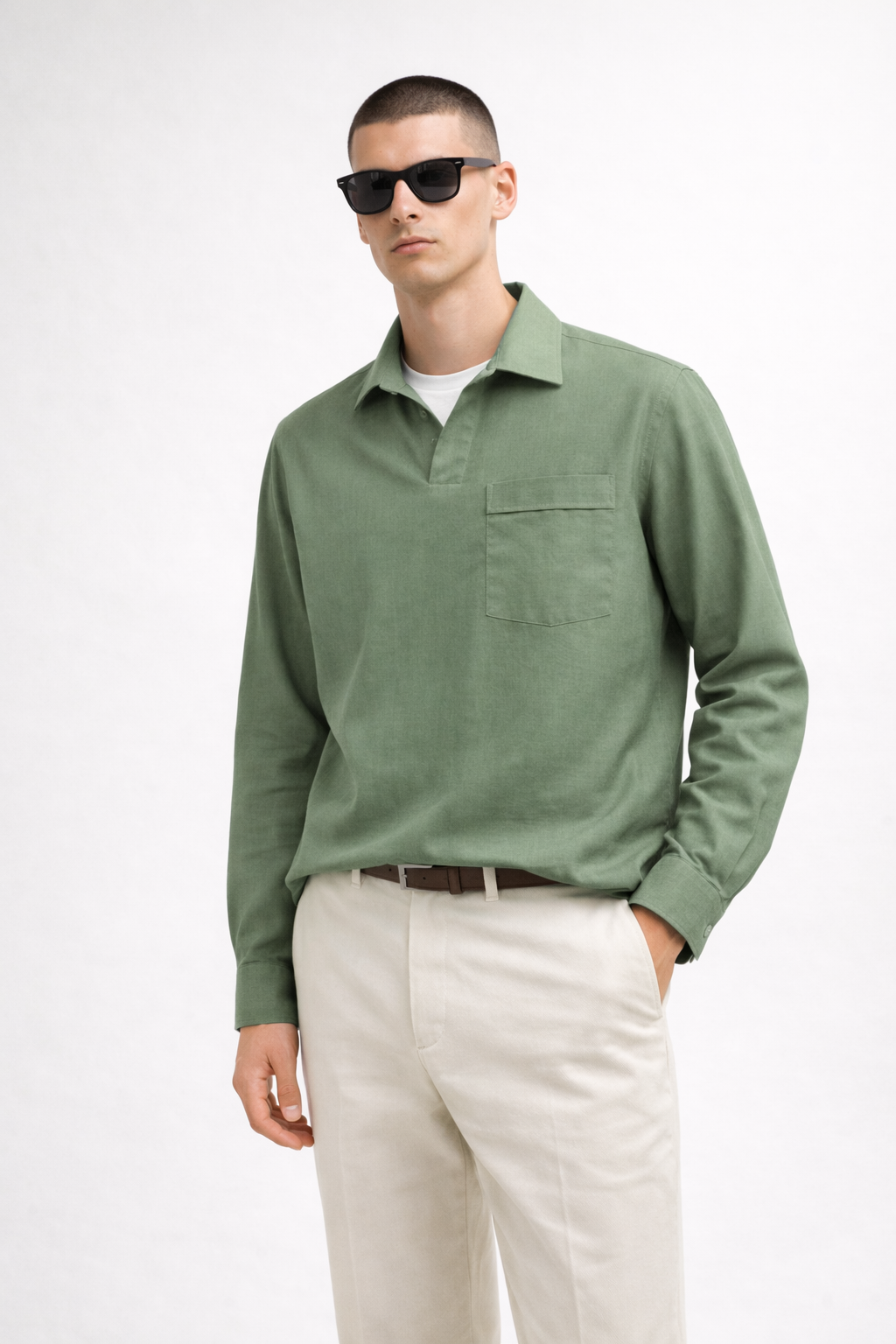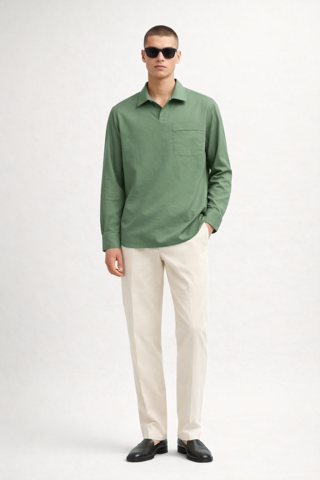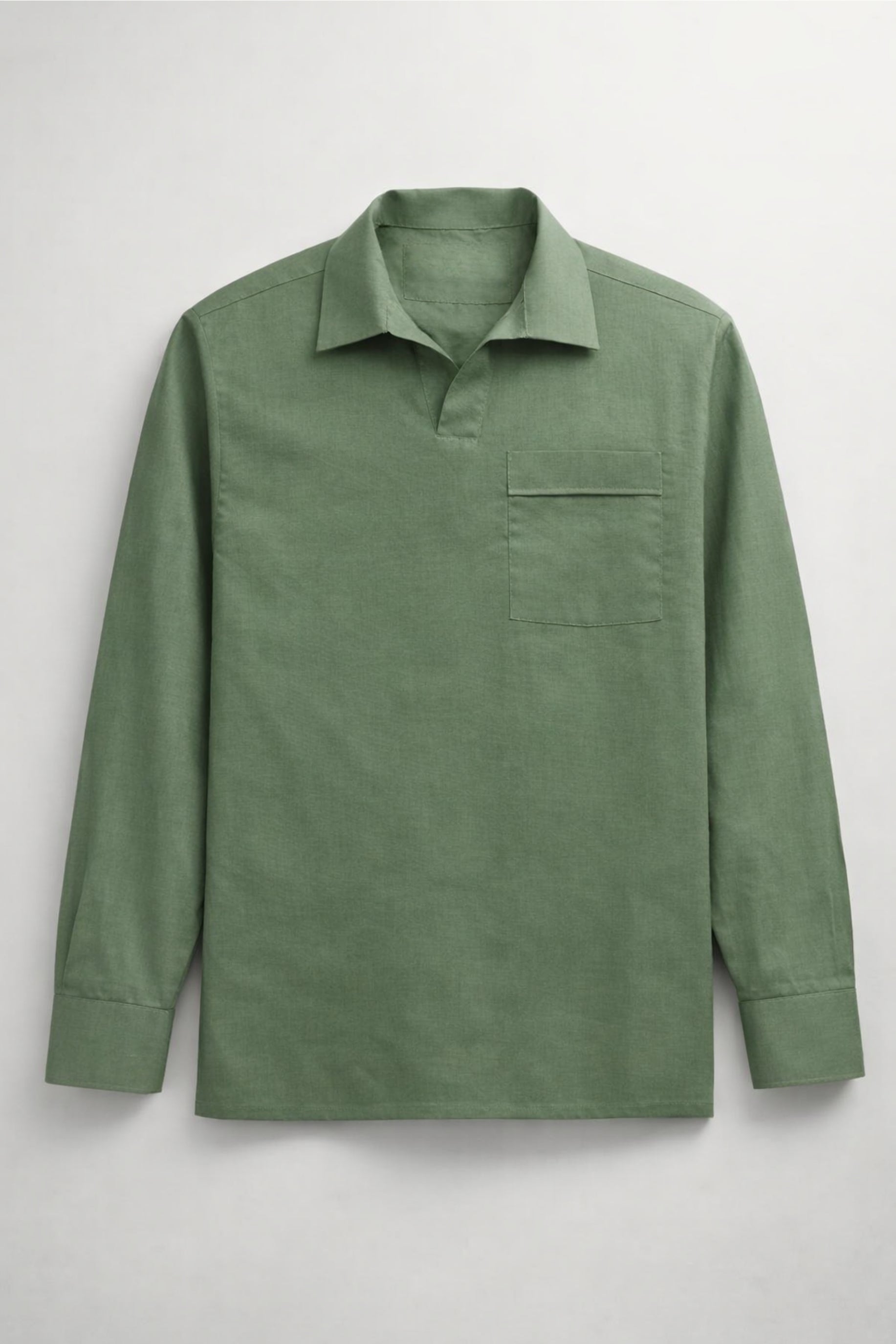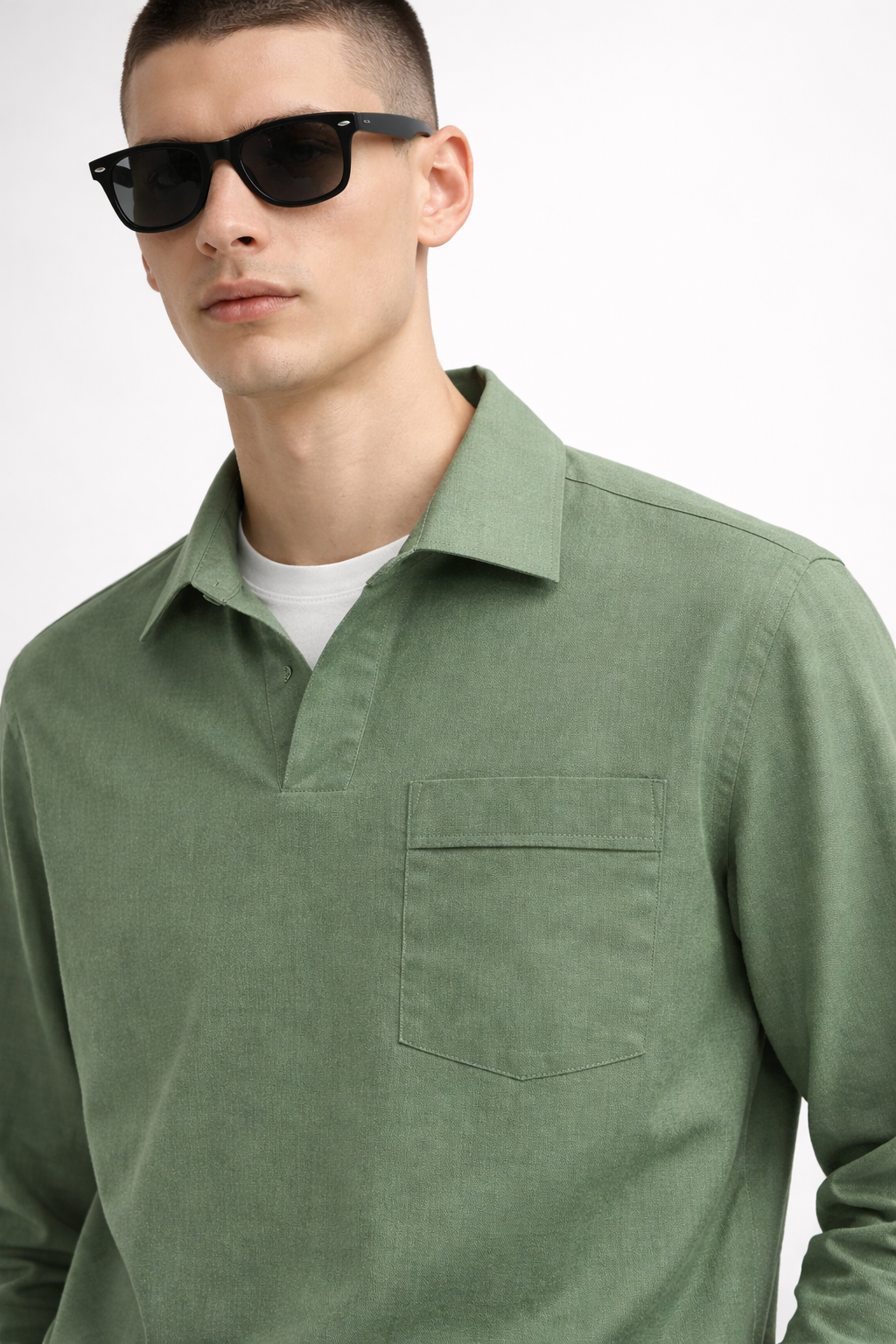 Design details: V-neck full sleeves Casual shirt with front pocket, cuffed sleeves and collar detail.
