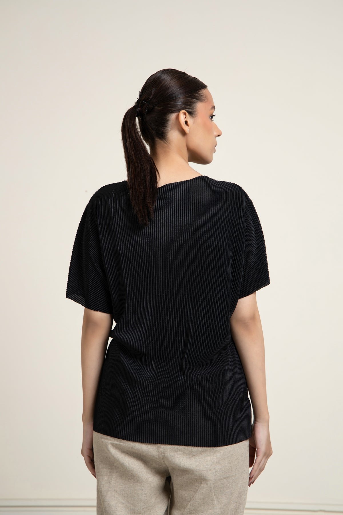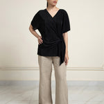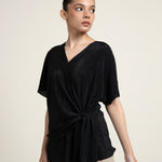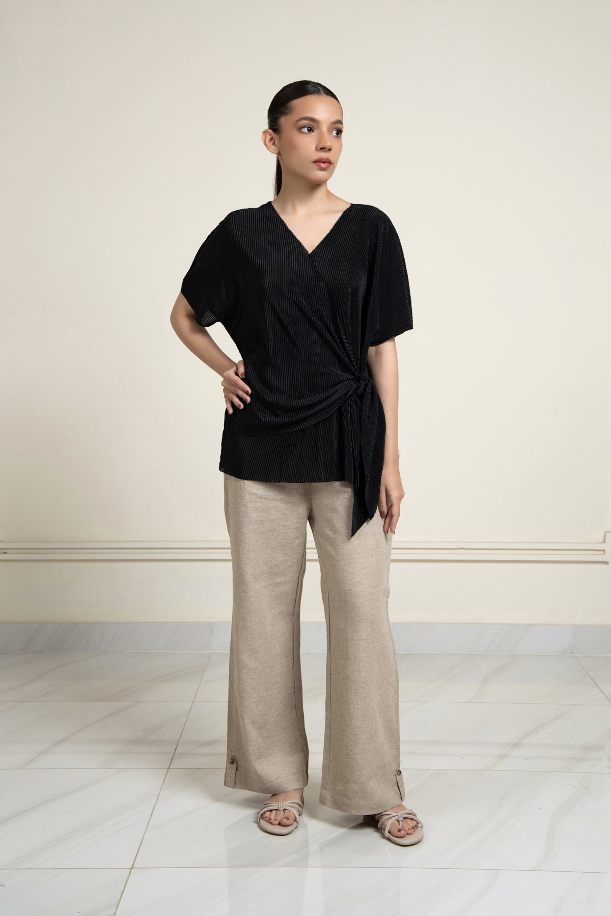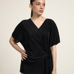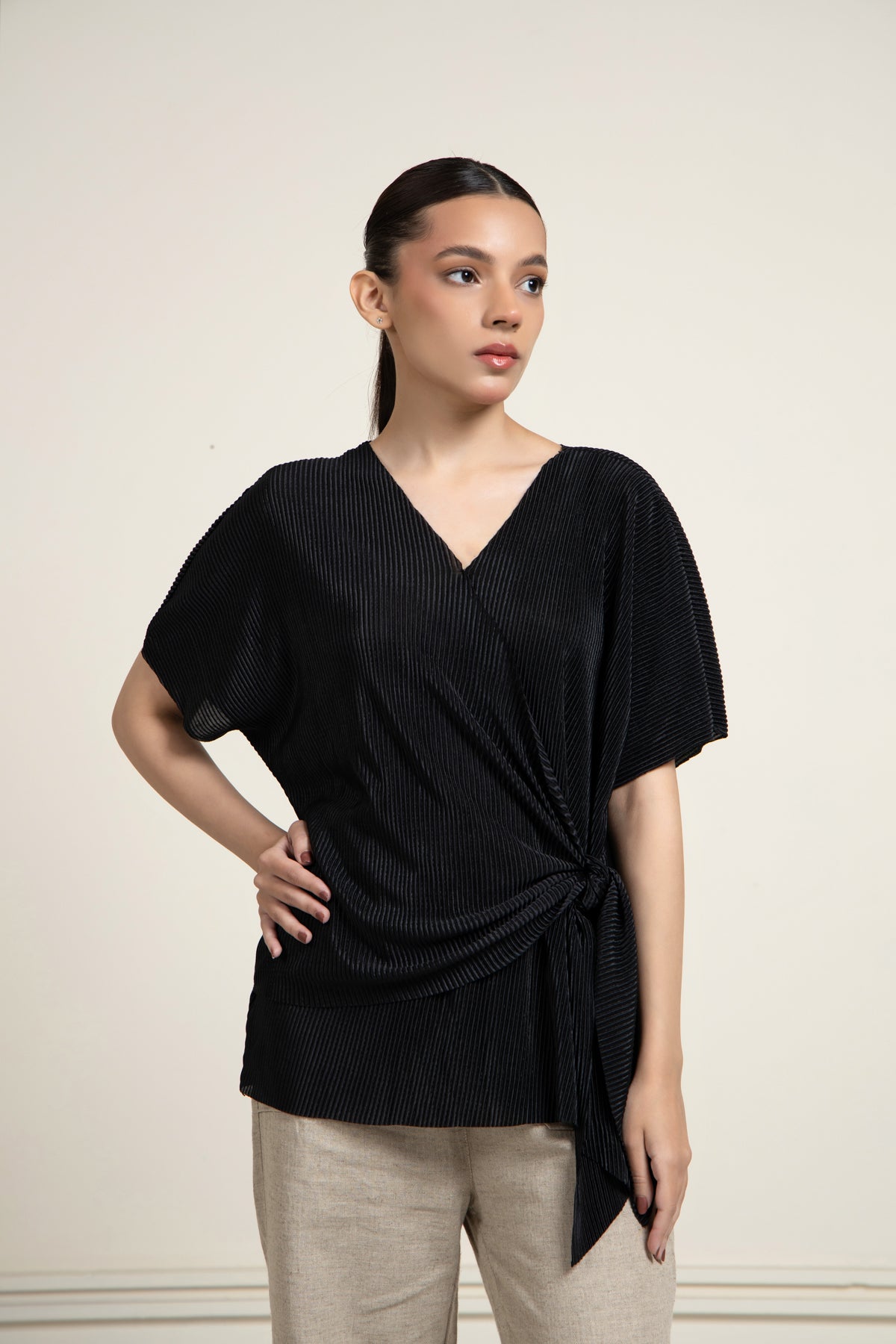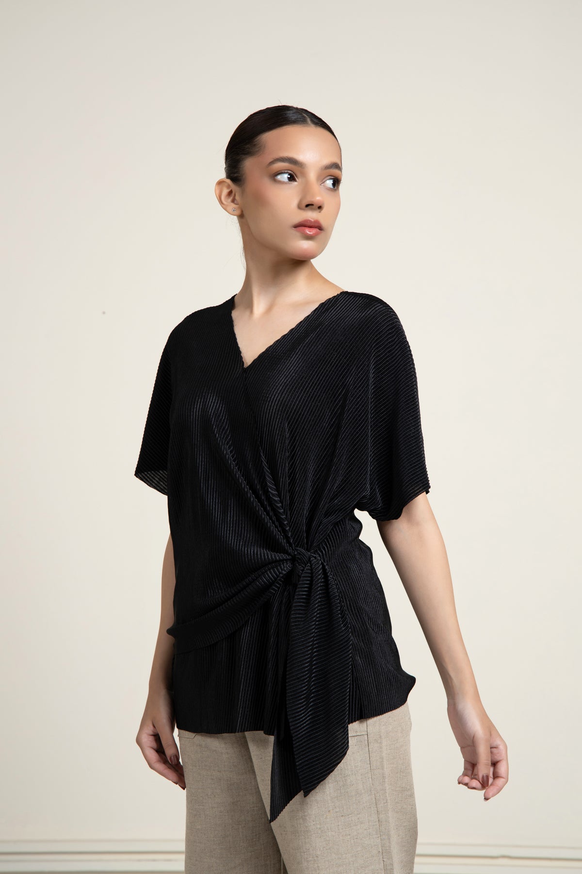 Design details: Half Sleeve V-neck with tie up knot with Pleated Silk fabric