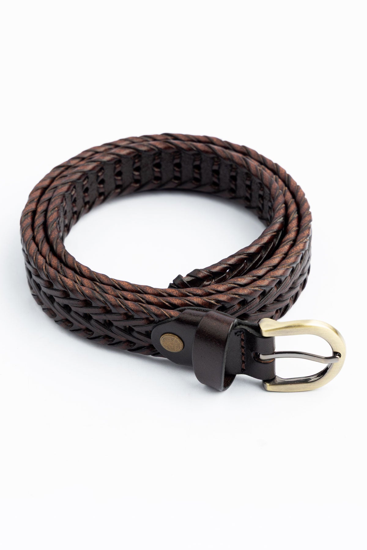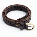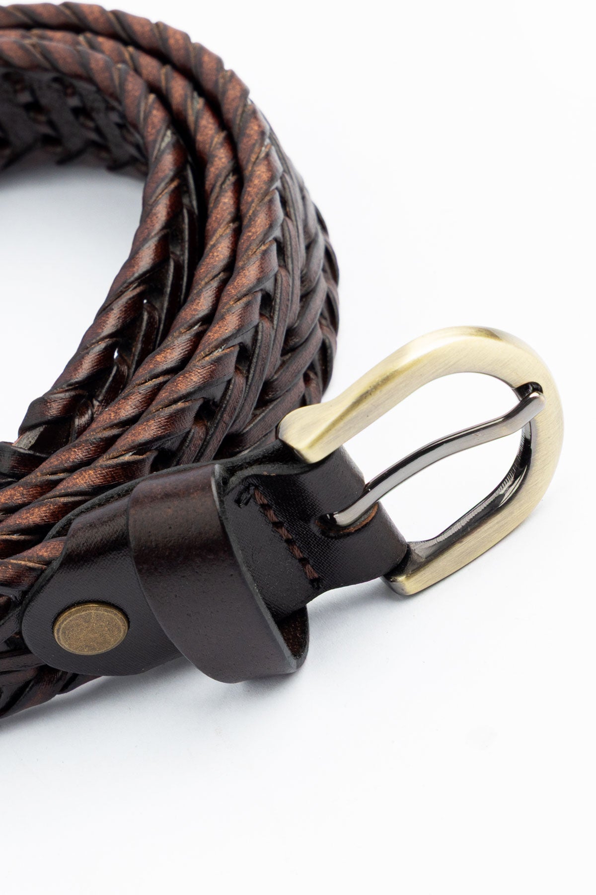 Elevate your casual and semi-formal looks with this intricately braided belt crafted from premium leatherette. The rich dark brown tone combined with a handwoven design gives it a rustic charm, while the antique brass-finished buckle adds a vintage accent. Made with high-quality polyurethane leather, this belt ensures both durability and style without using animal products.