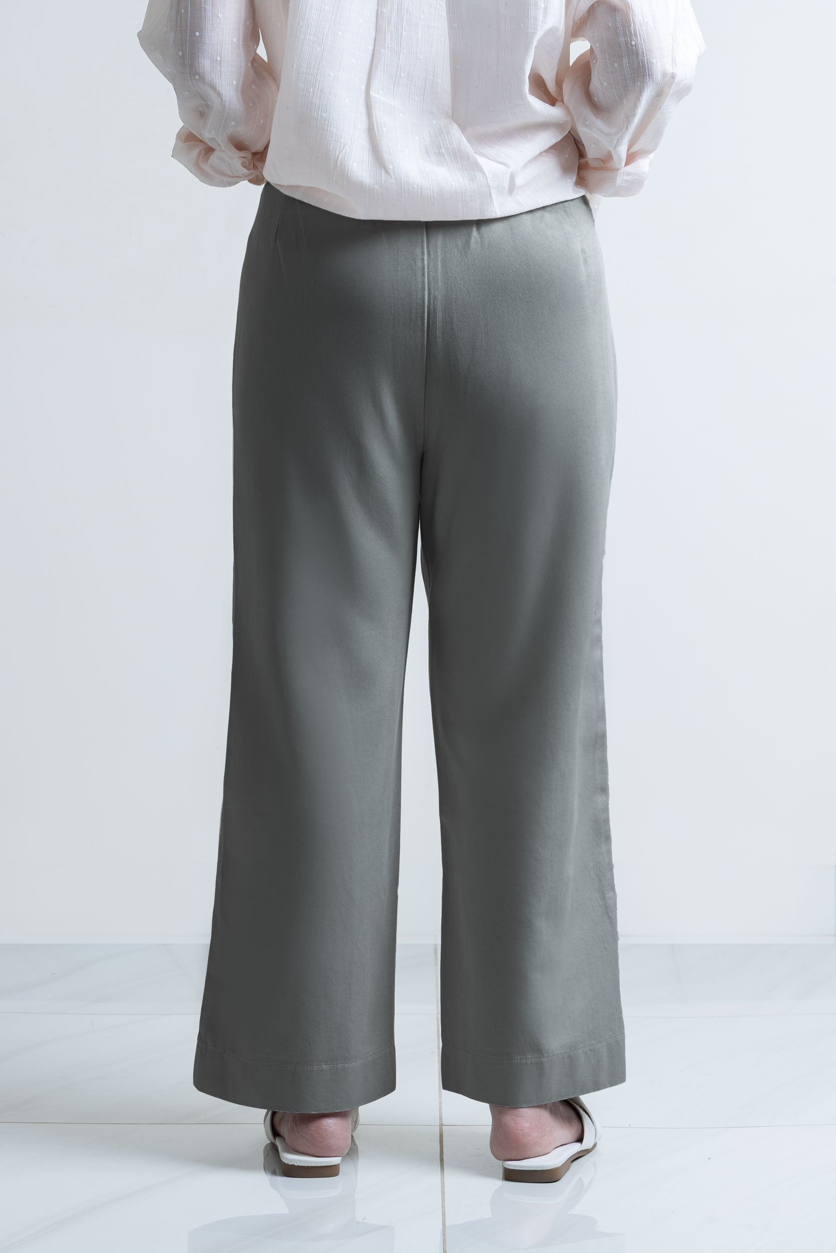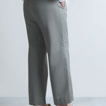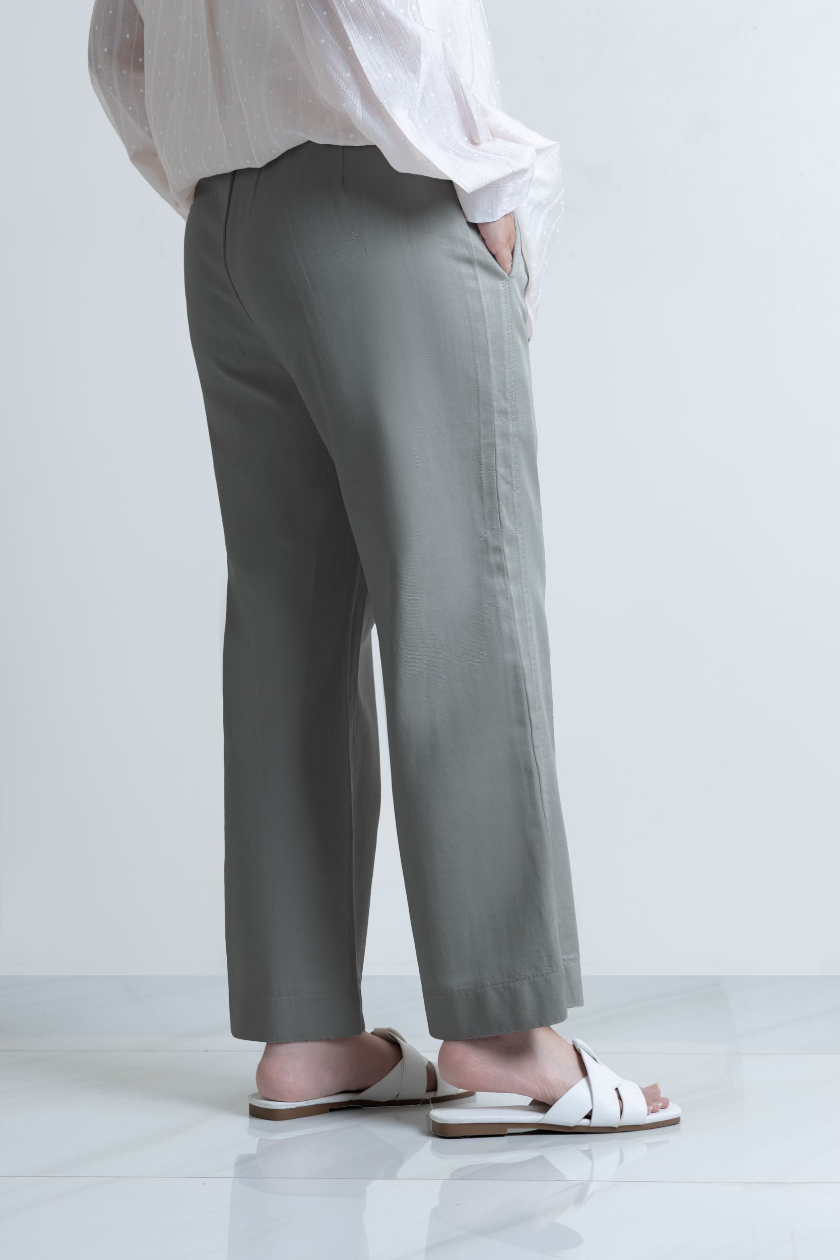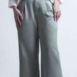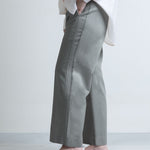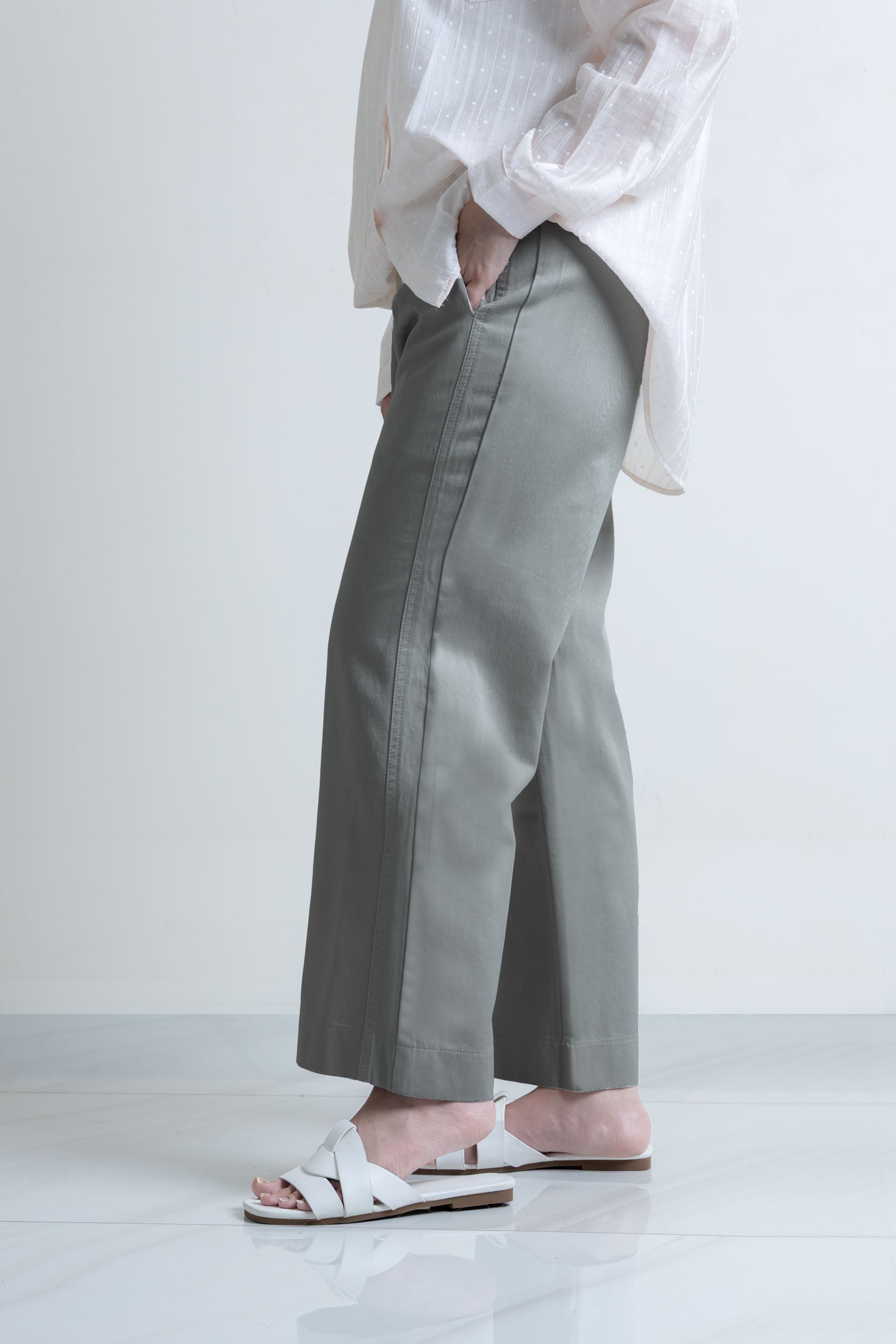 These 100% blended Cotton Twill wide-legged pants with side panel feature a straight boxy cut, and cross side pockets, offering a relaxed, comfortable fit with a casual, modern style.