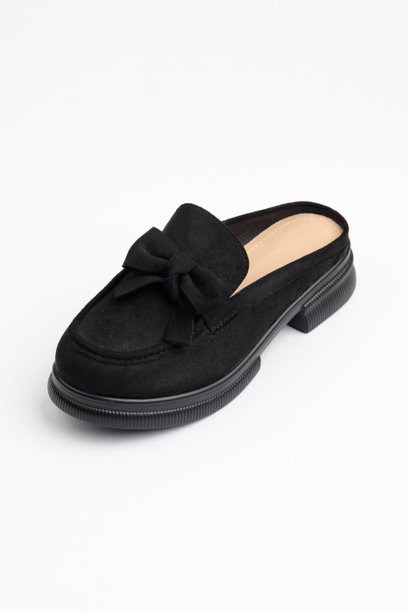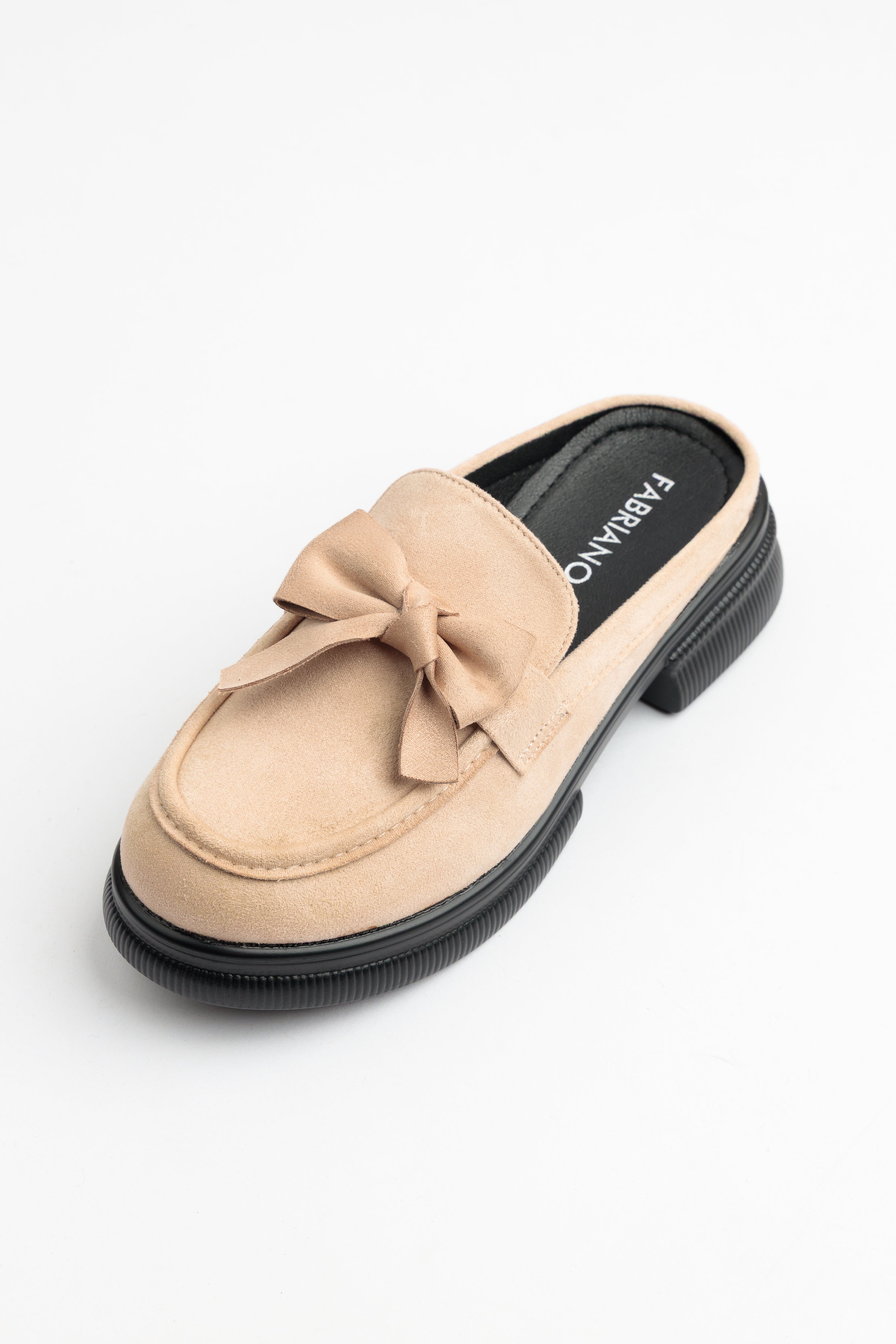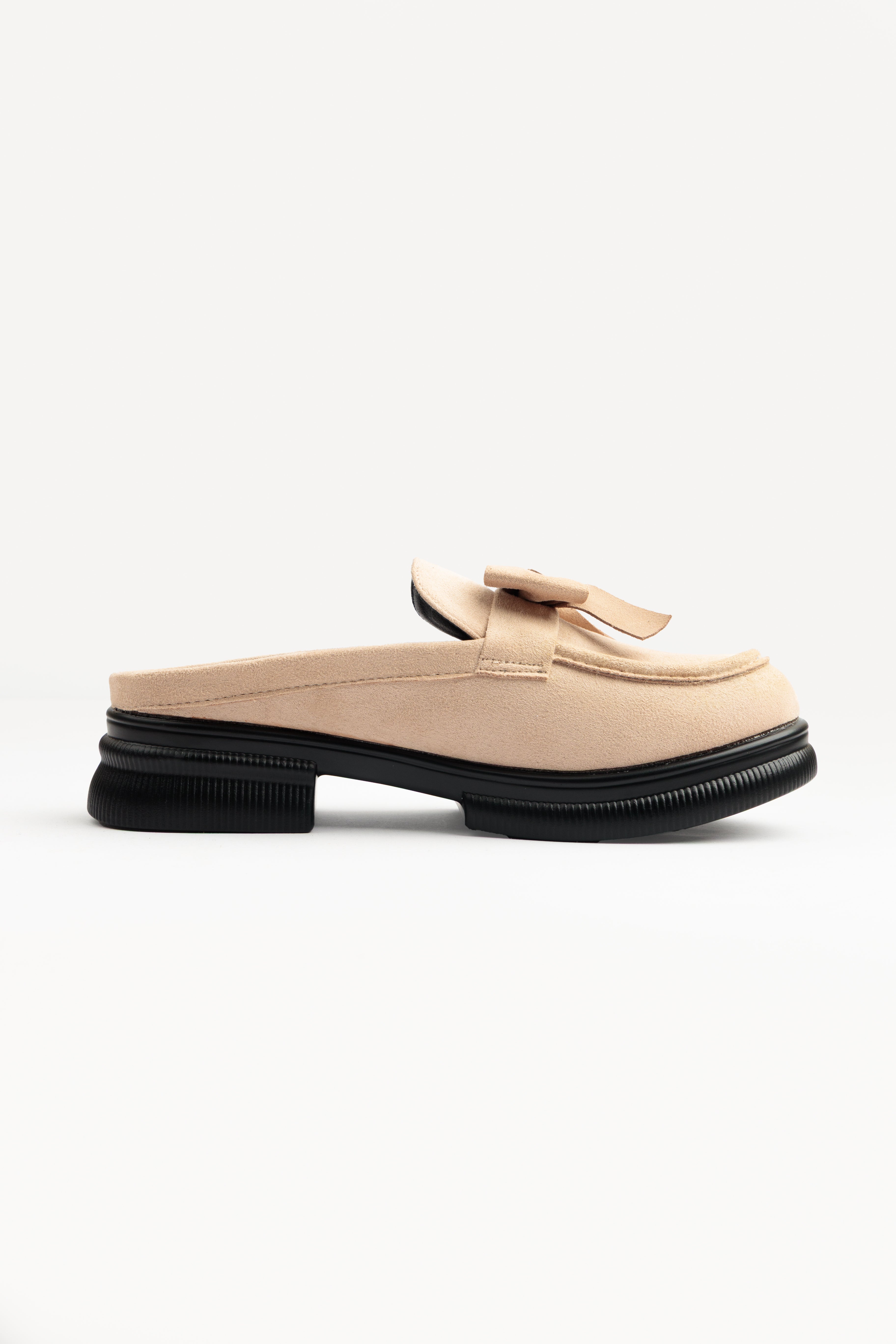 BEIGE SLIP-ON MULES WITH BOW