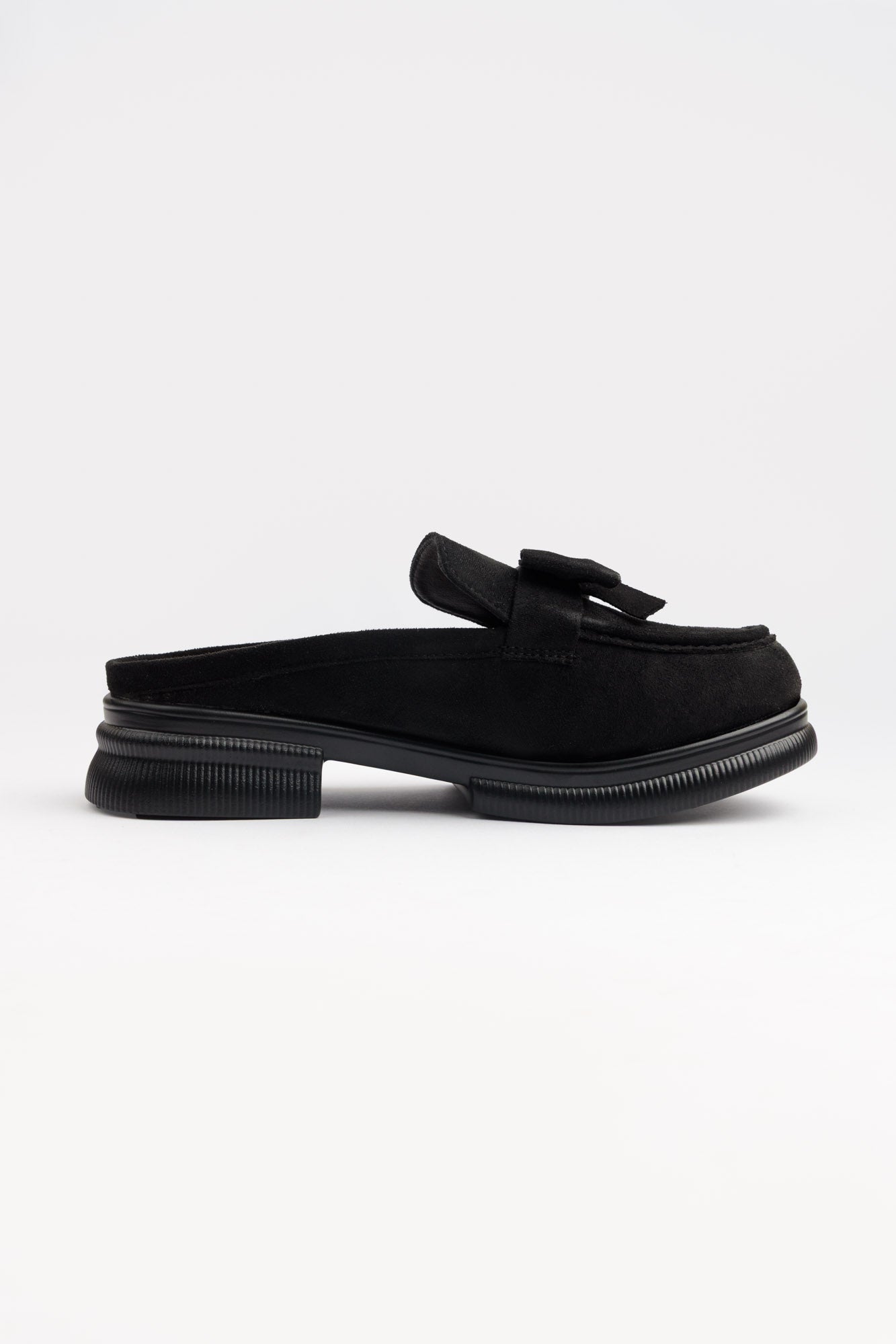BLACK SLIP-ON MULES WITH BOW