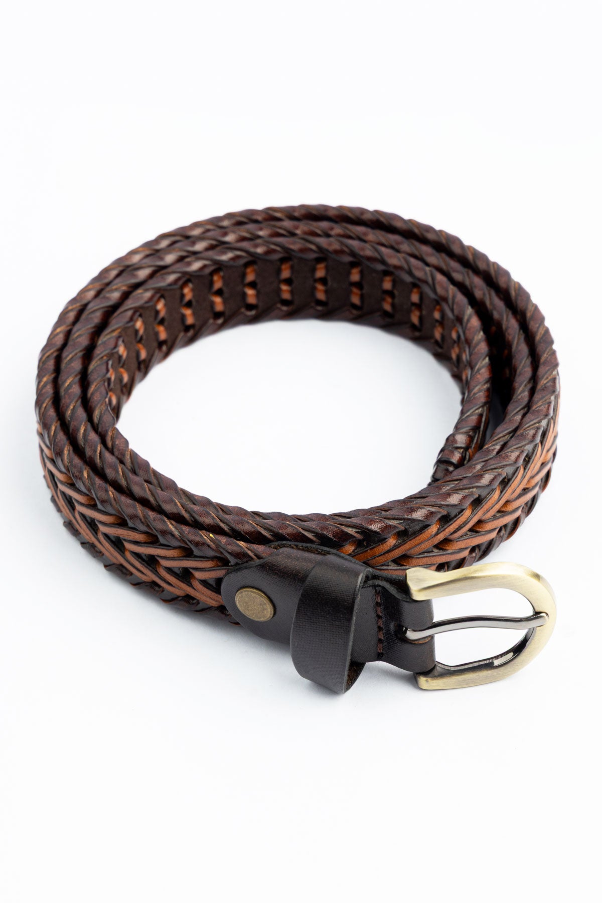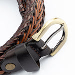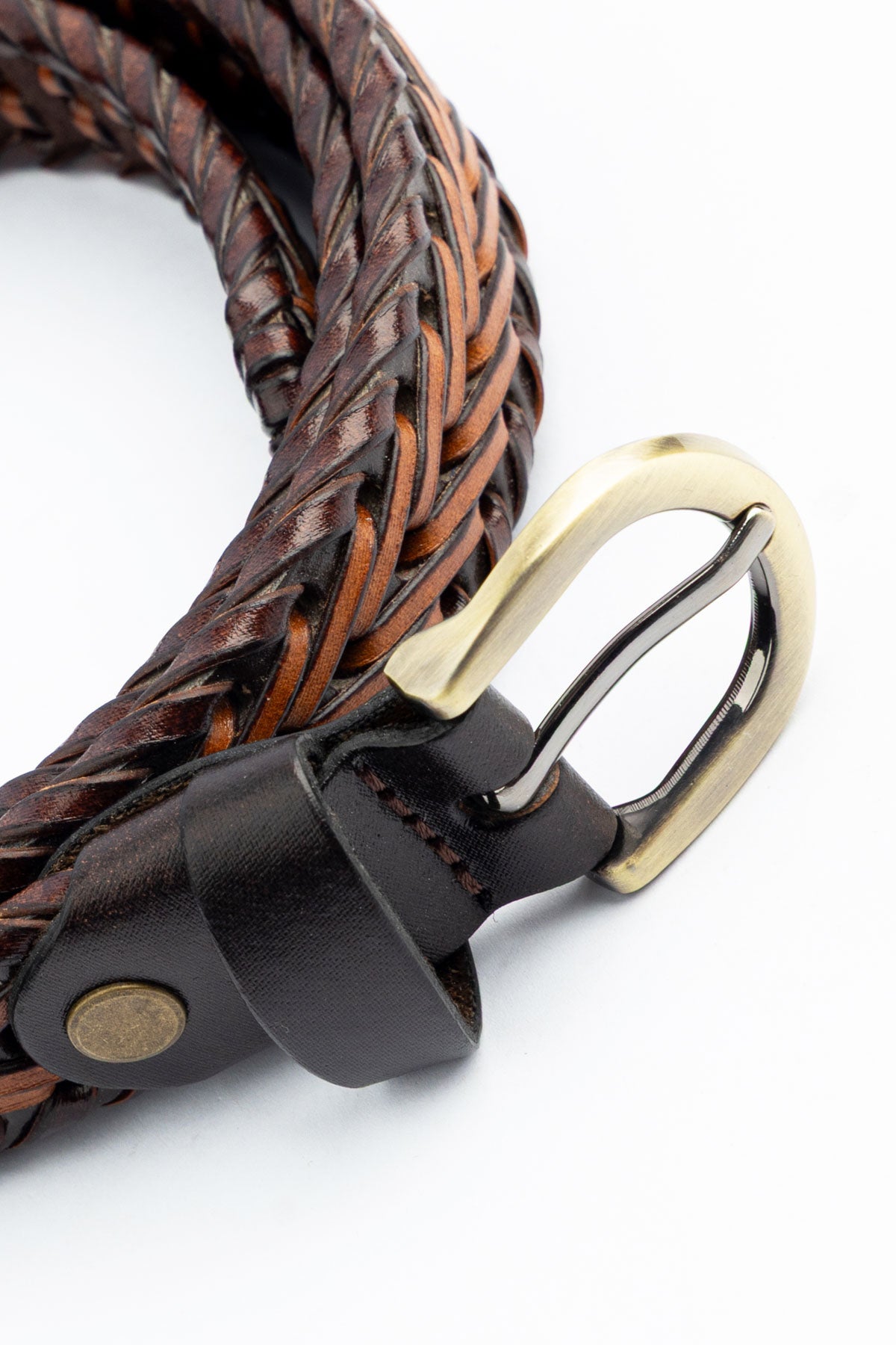Elevate your casual and semi-formal looks with this intricately braided belt crafted from premium leatherette. The rich dark brown tone combined with a handwoven design gives it a rustic charm, while the antique brass-finished buckle adds a vintage accent. Made with high-quality polyurethane leather, this belt ensures both durability and style without using animal products.