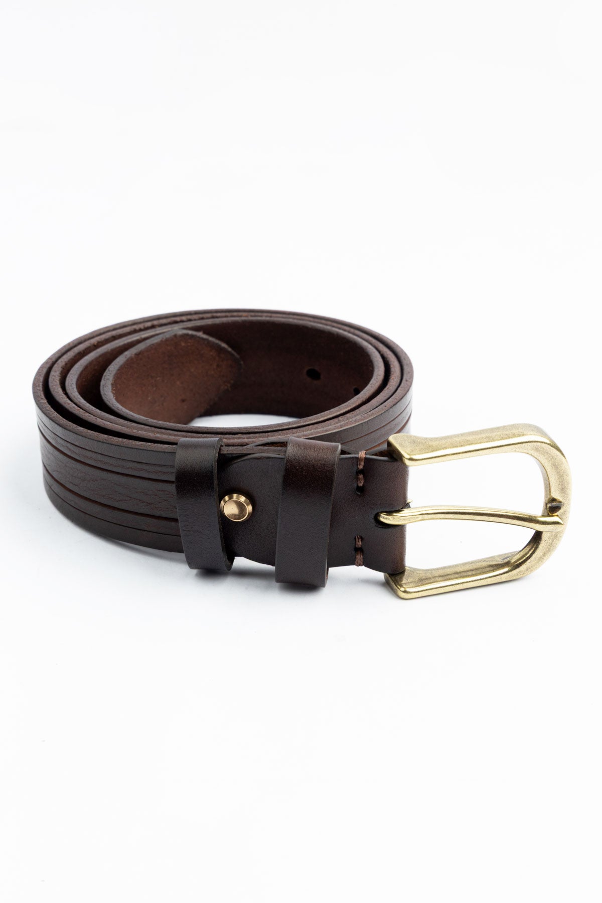 This belt combines durability with a rugged charm. The use of polyurethane leather ensures flexibility, moisture resistance, and a cruelty-free alternative to genuine leather. The antique brass buckle complements casual and semi-formal outfits, making it an excellent choice for everyday wear or outdoor styling.