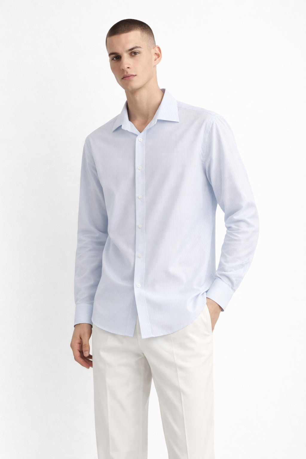 Design details: Cotton Linen Striper full sleeves button down shirt with Multi Style Collar design