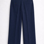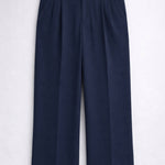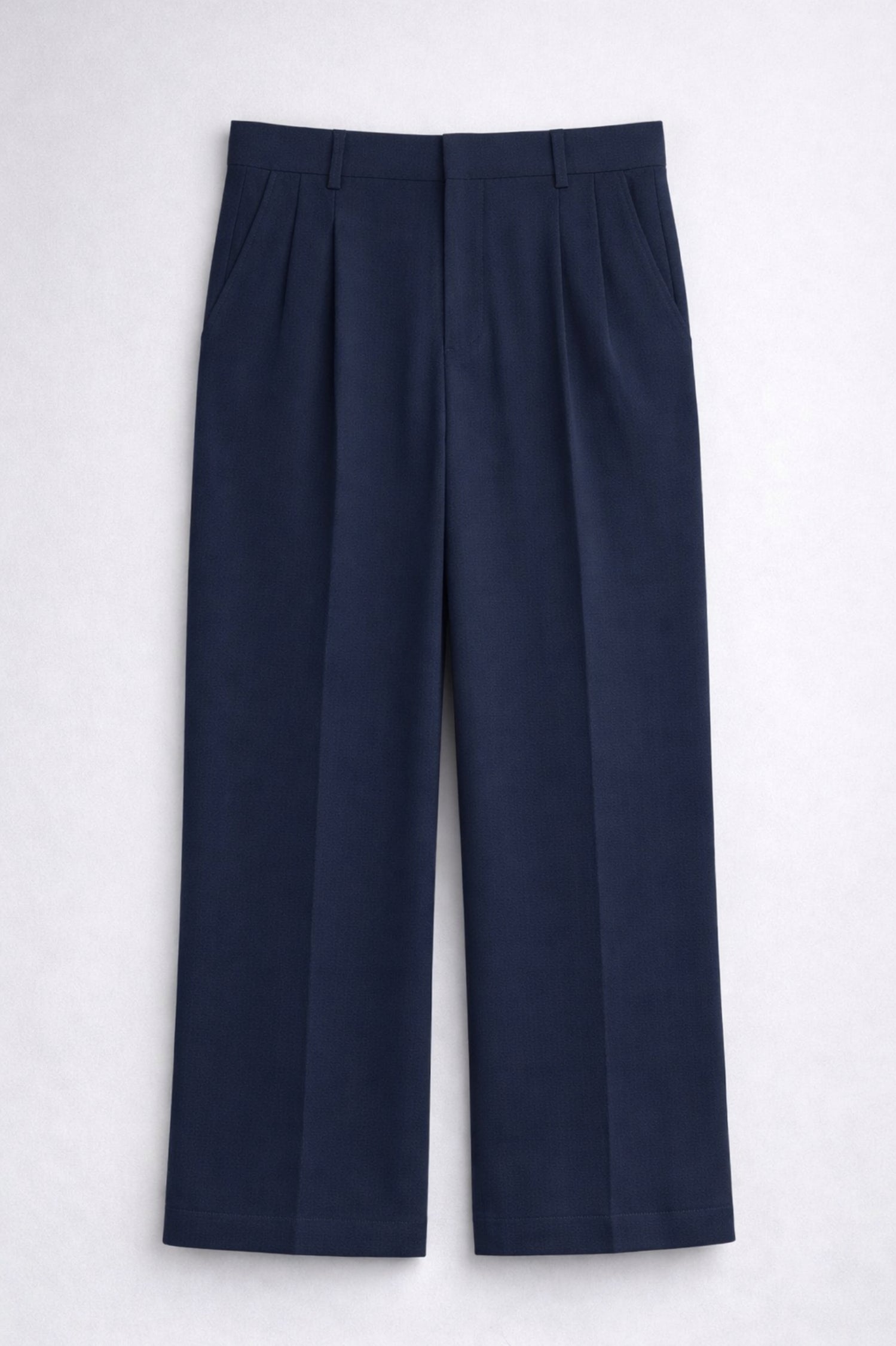 Design details: Straight-leg trousers with front pleats, side pockets, belt loops & clean waistband finish