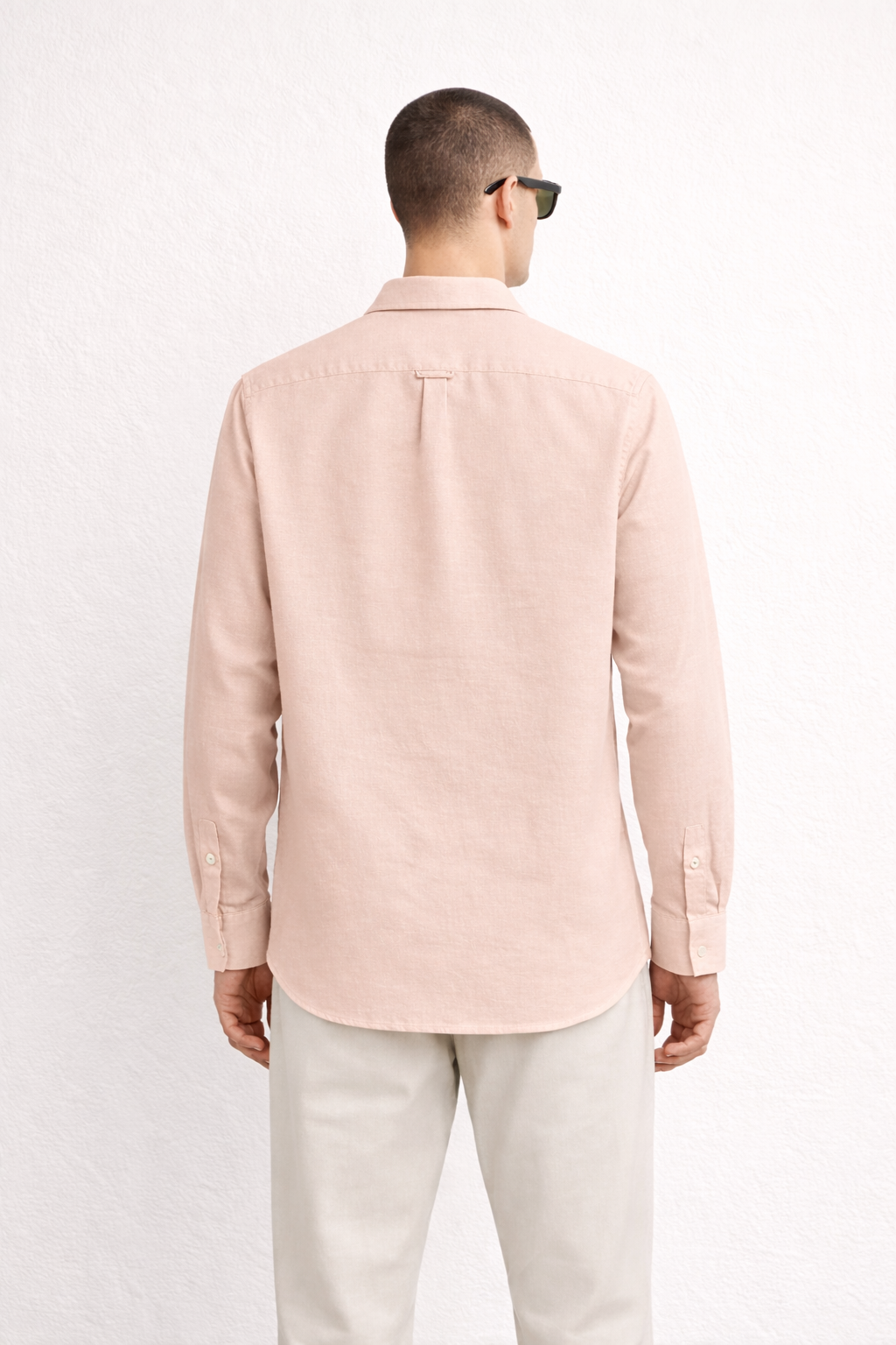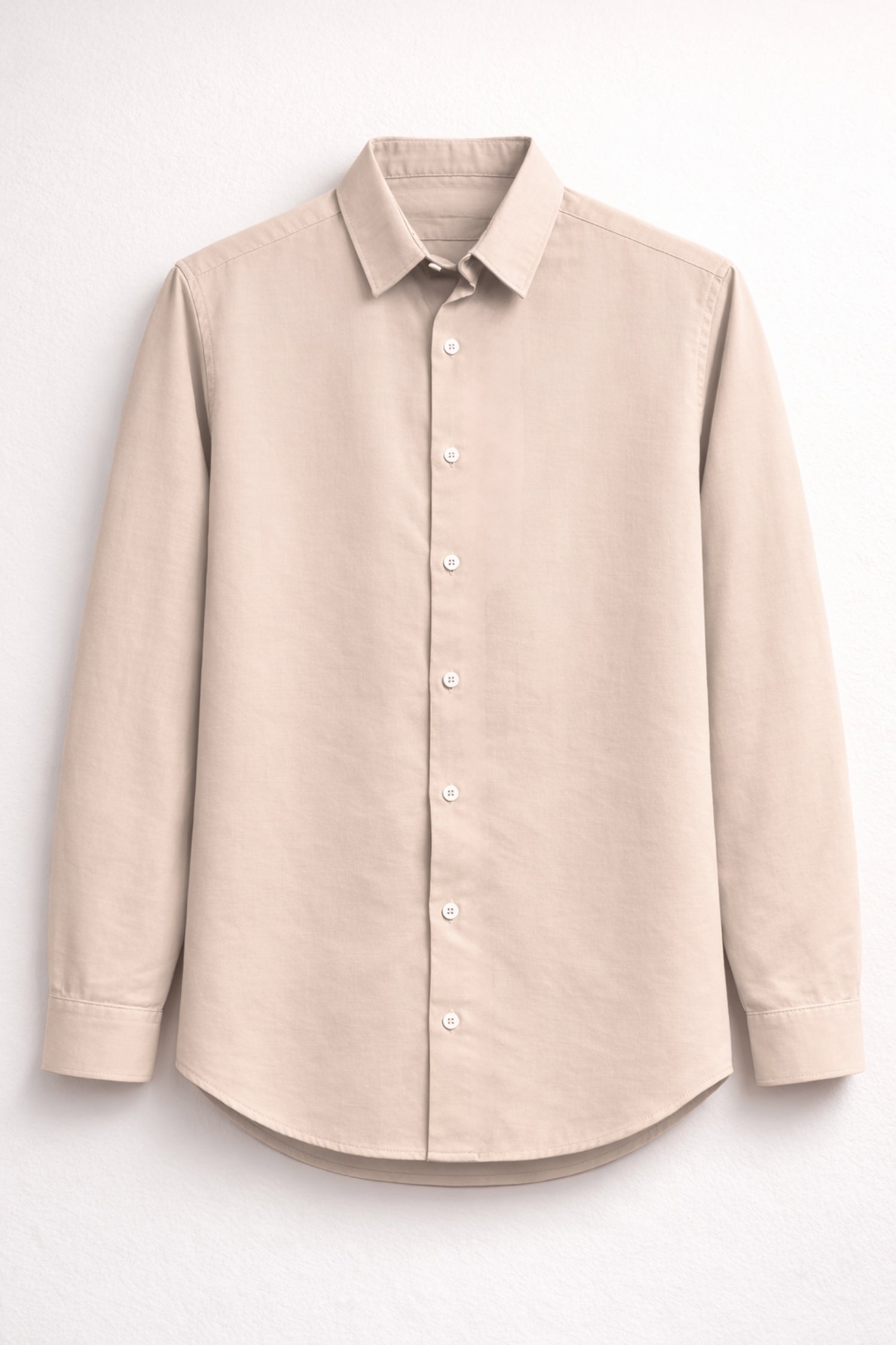 Design details: Long-sleeve button-down shirt with classic pointed collar, full front button placket & curved hem
