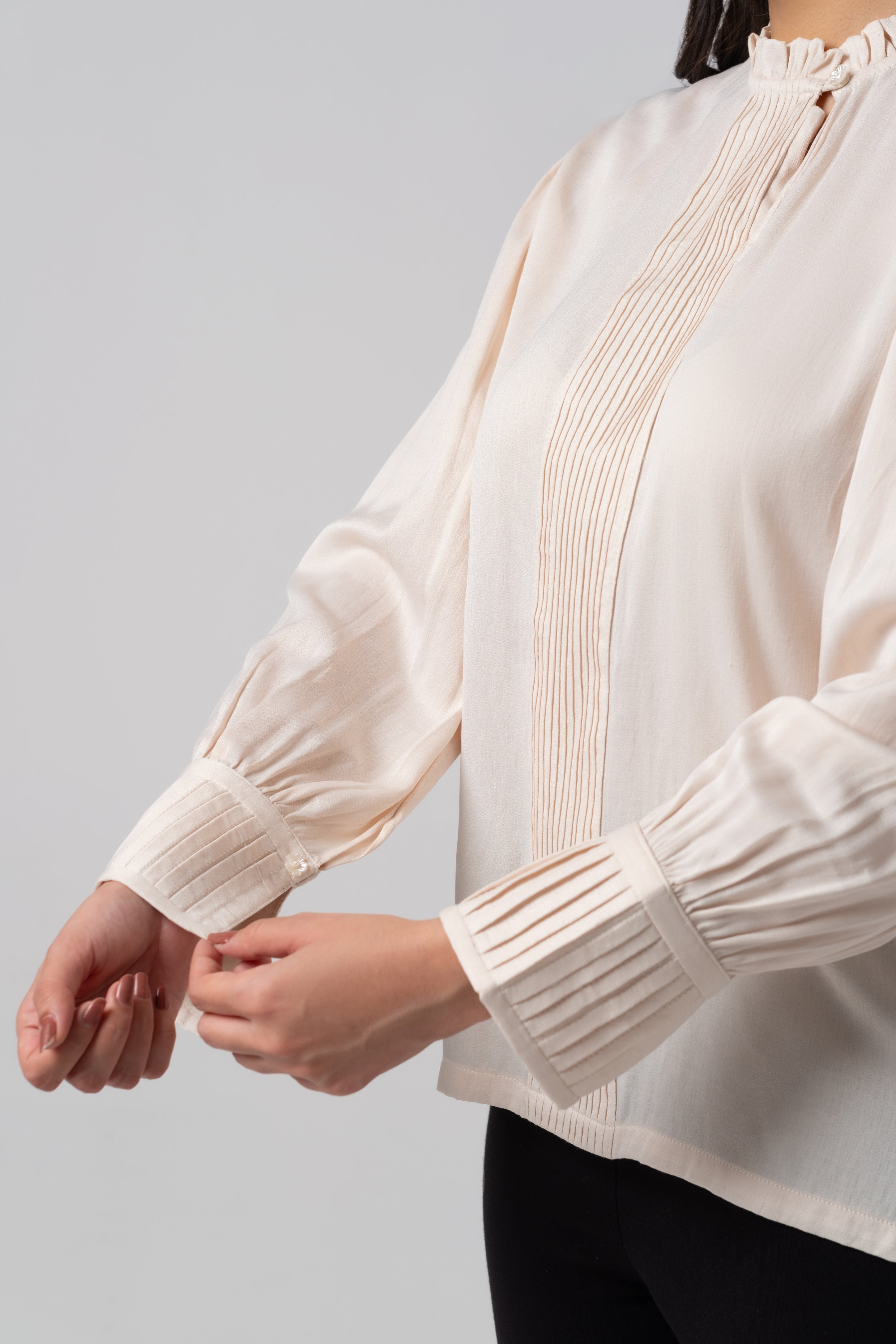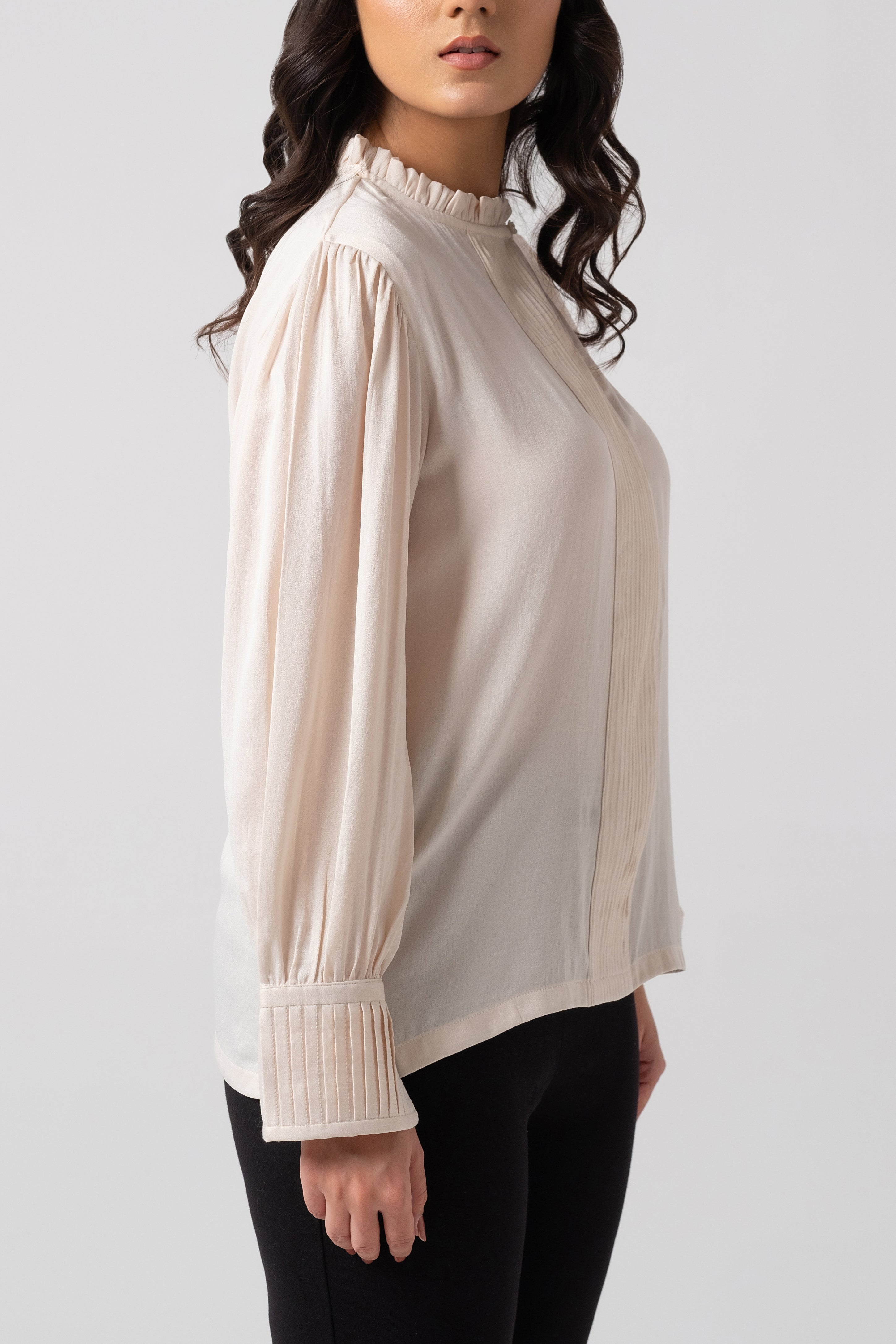 Design details: Frill Neck Pleated Blouse